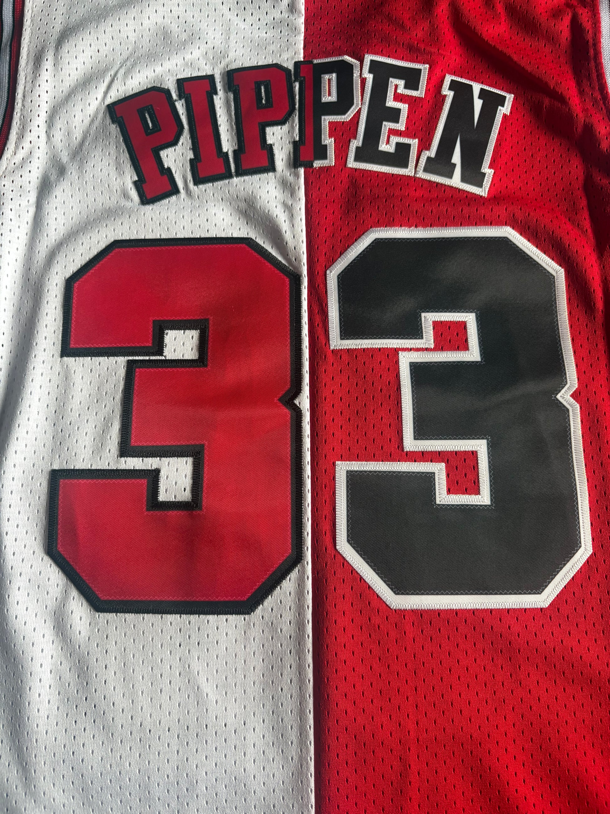 Retro 1/2& 1/2 Chicago Bulls Pippen Basketball Vest Large Black, Red & White 33