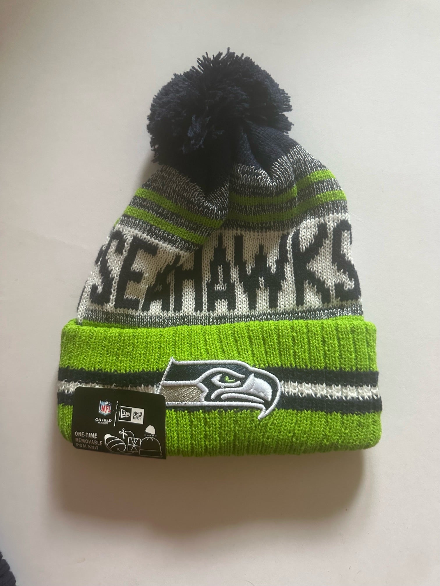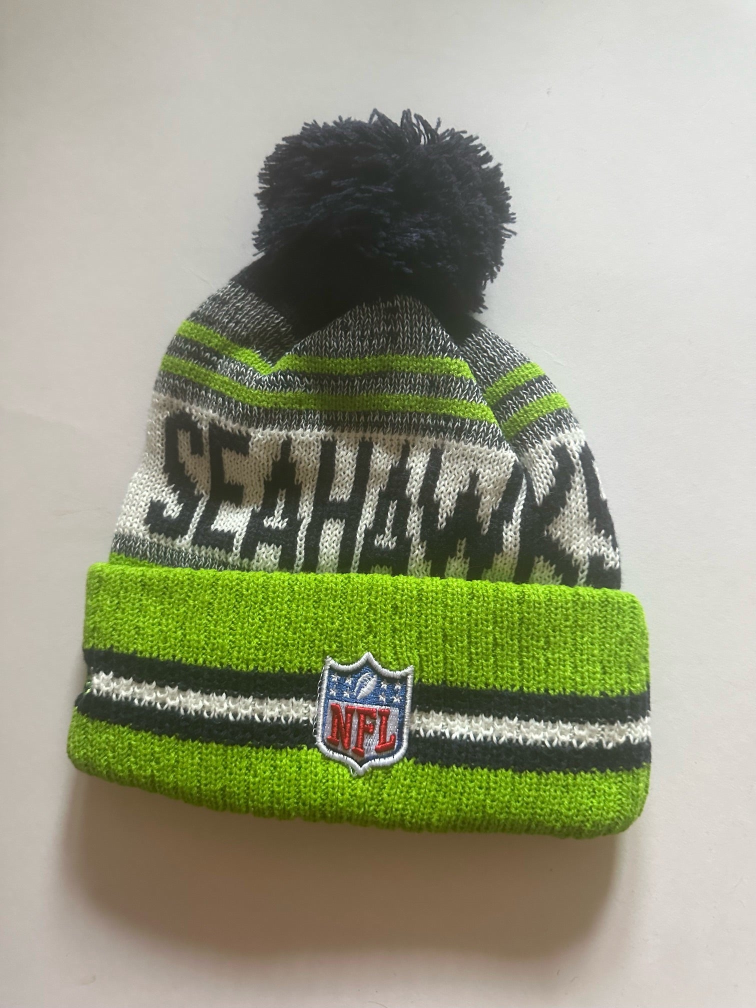 Seattle Seahawks NFL Bobble Beanie Multi Colour With Tags on