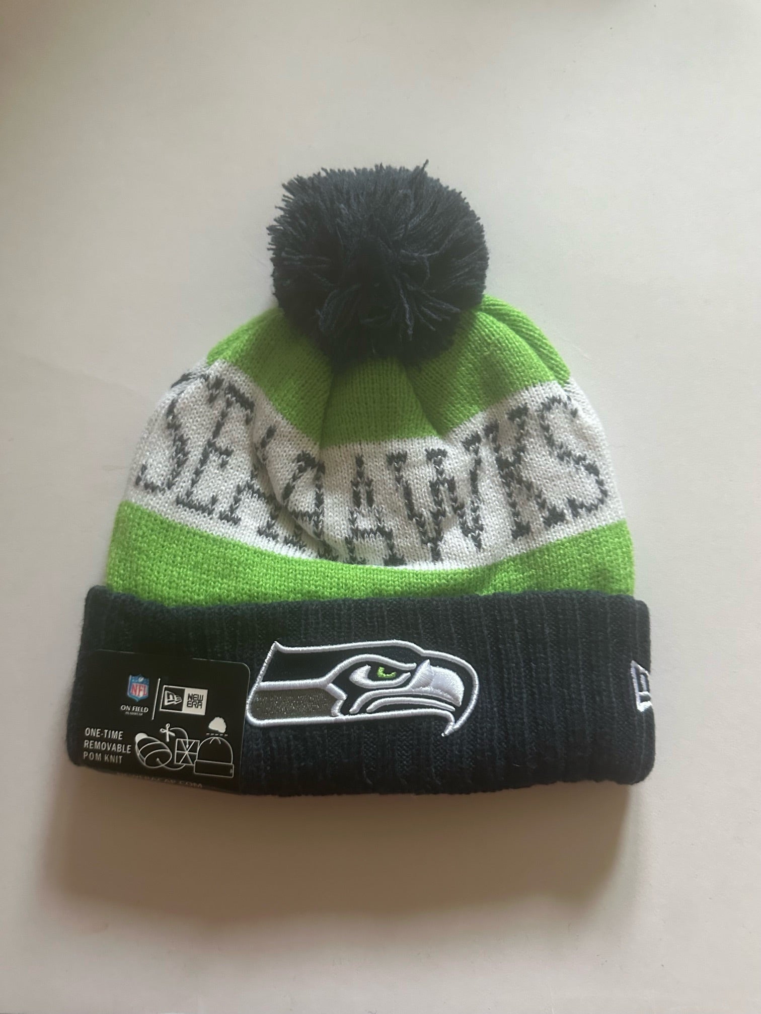 Seattle Seahawks NFL Bobble Beanie Multi Colour With Tags on